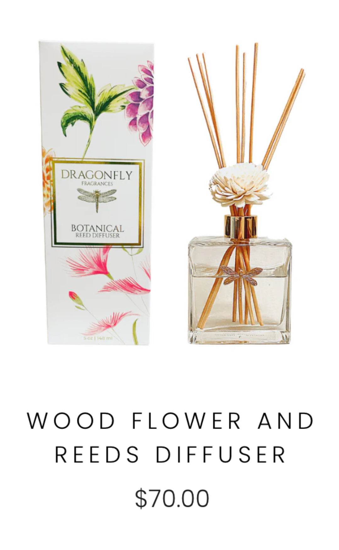 DRAGONFLY - Wood Flower and Reeds Diffuser. 5 oz. Fragrance: Current + Geranium