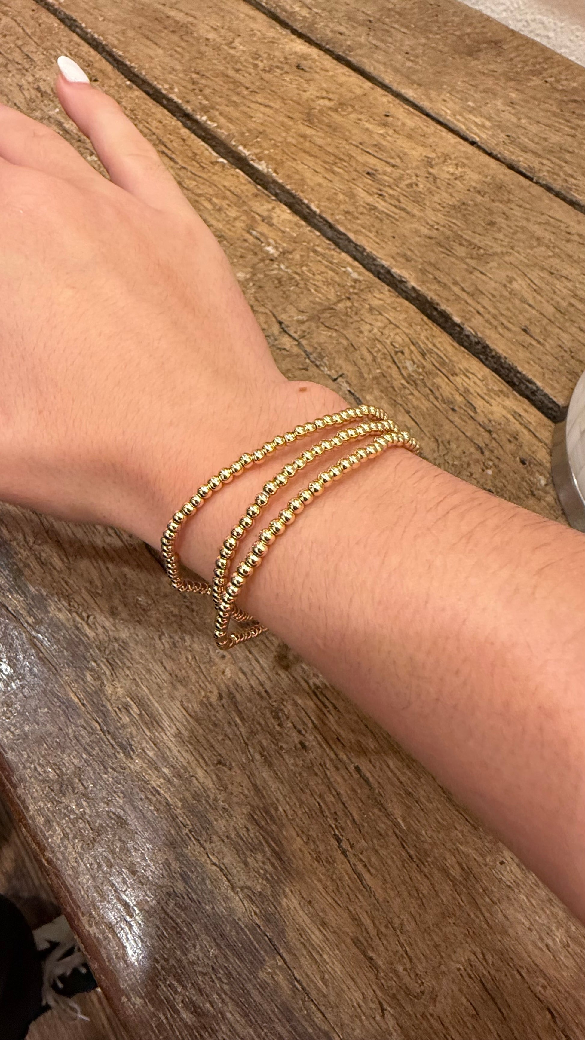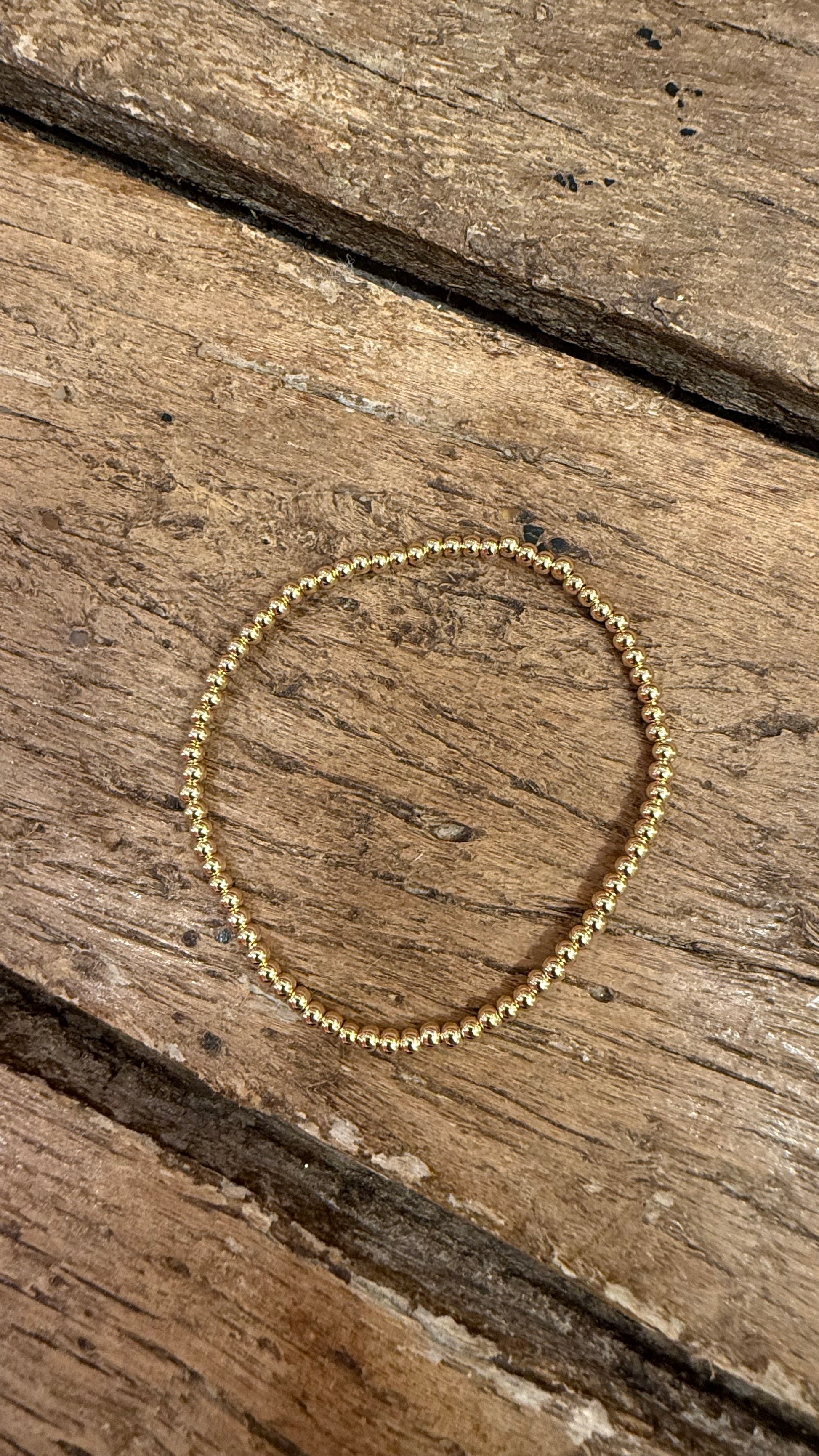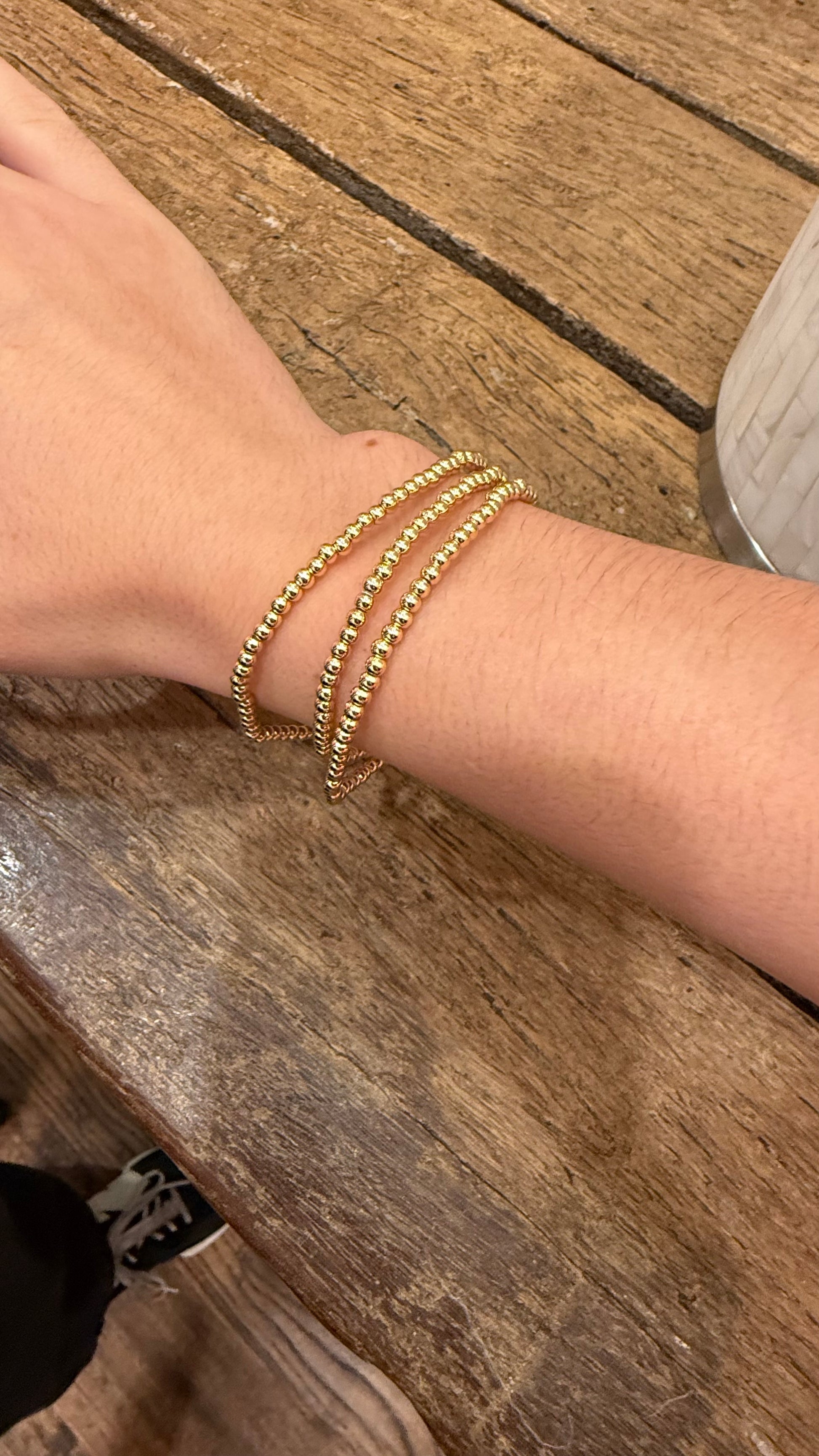 Gold 3mm Beaded Stretch Water Resistant Bracelet