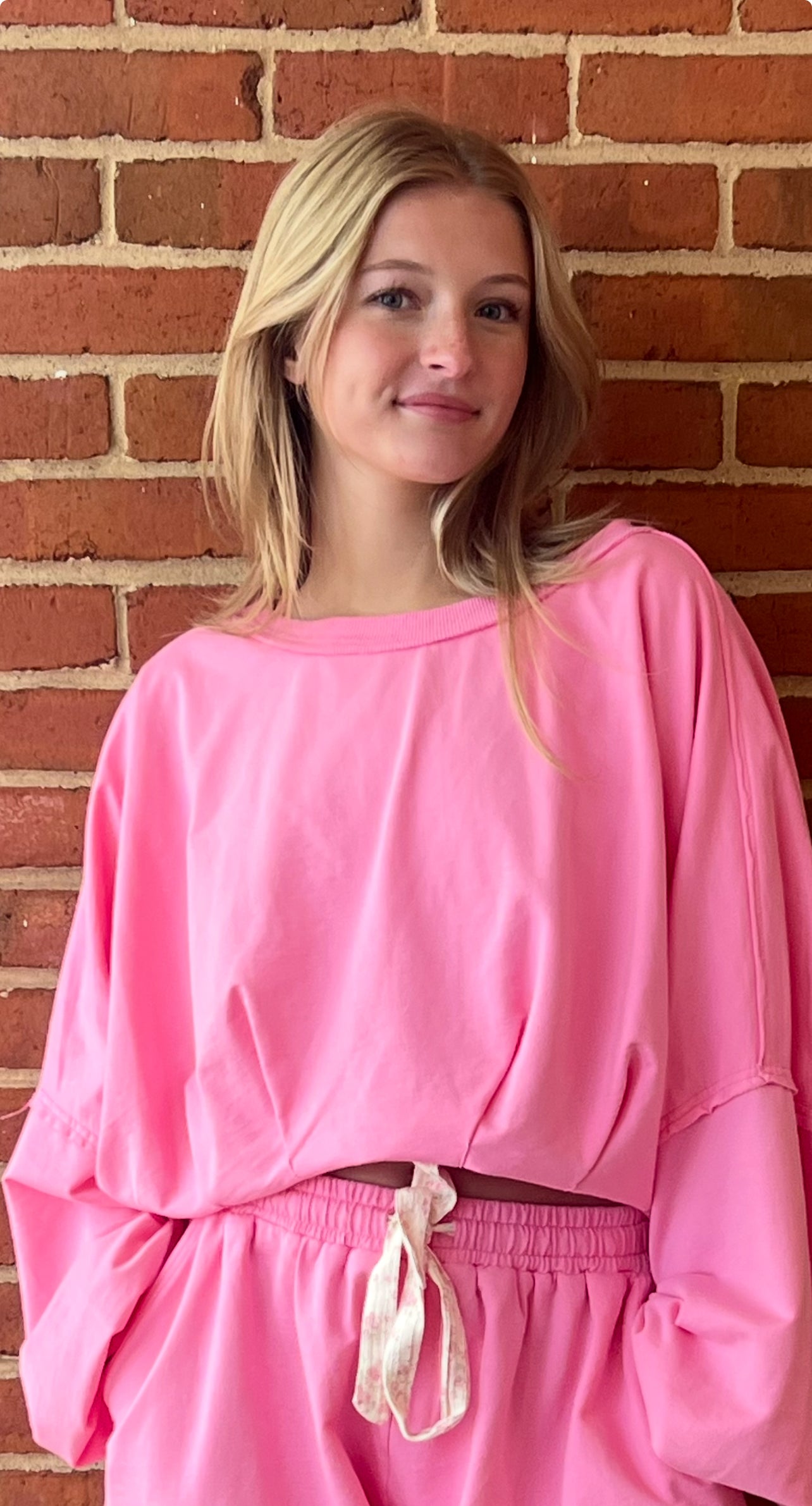 PINK CROPPED BUBBLE HEM SWEATSHIRT by Peach Love