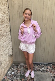 Pink French Terry with Ditsy Flower Print Semi Button Up Top by Peach Love