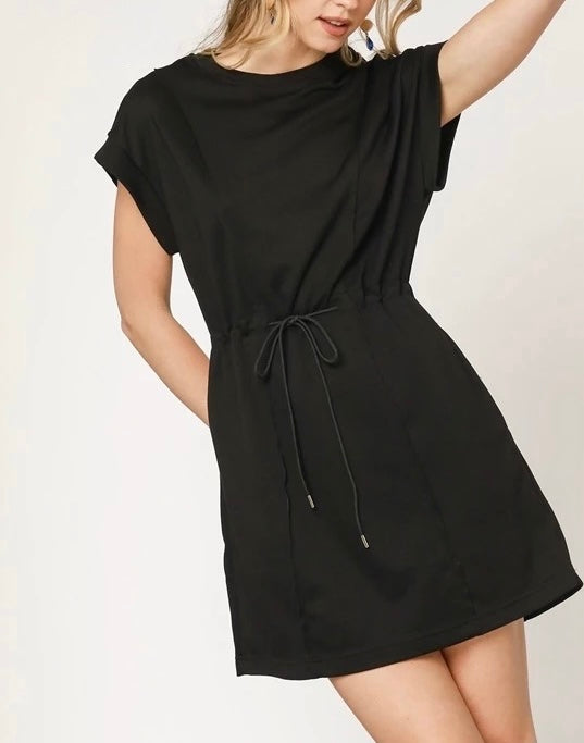 The little black dress reimagined for everyday. With a soft knit feel, adjustable drawstring waist, and easy silhouette, this one is made to move with you. Dress it down with sneakers or elevate it with sandals and statement earrings. A closet staple you’ll keep coming back to.